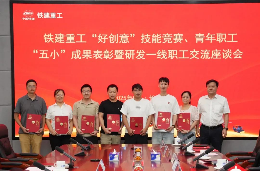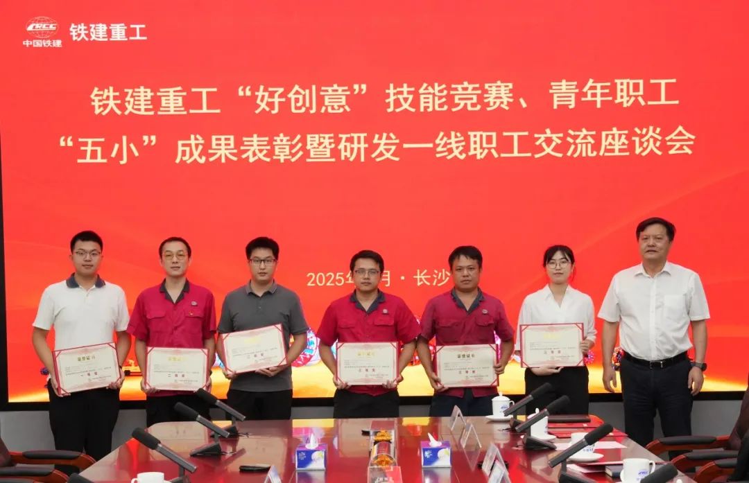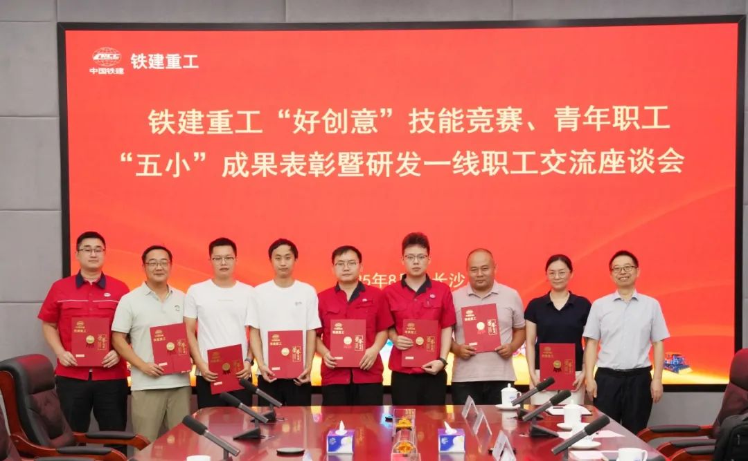 8月6日,鐵建重工召開“好創意”技能競賽、青年職工“五小”成果表彰暨研發一線職工交流座談會。鐵建重工黨委書記、董事長趙暉,黨委常委、副總經理、工會主席譚光勇出席,并為獲獎職工代表現場頒發榮譽證書及獎品。